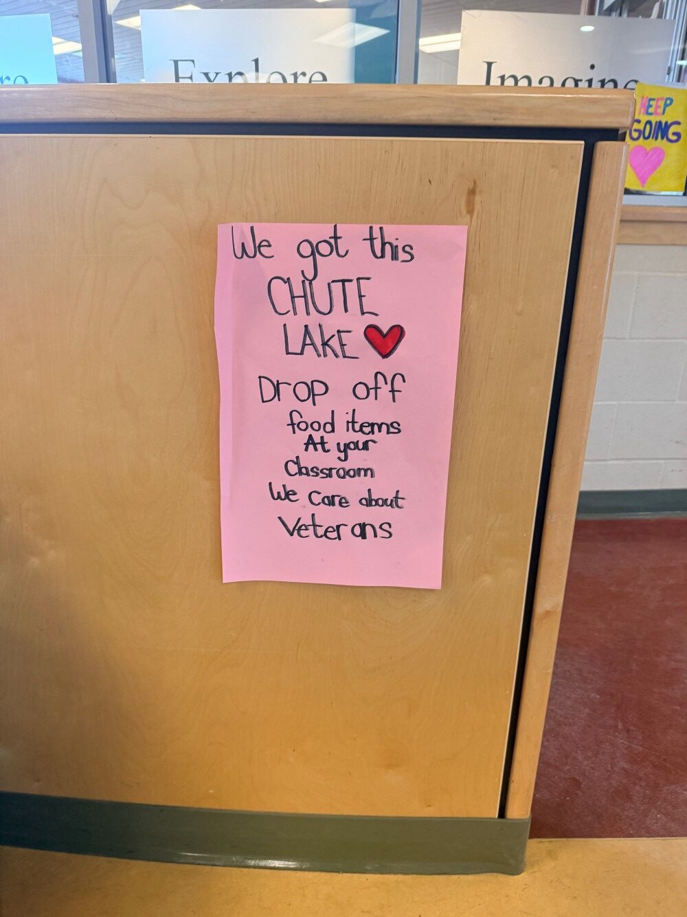 Chute Lake Elementary food drive donation sign